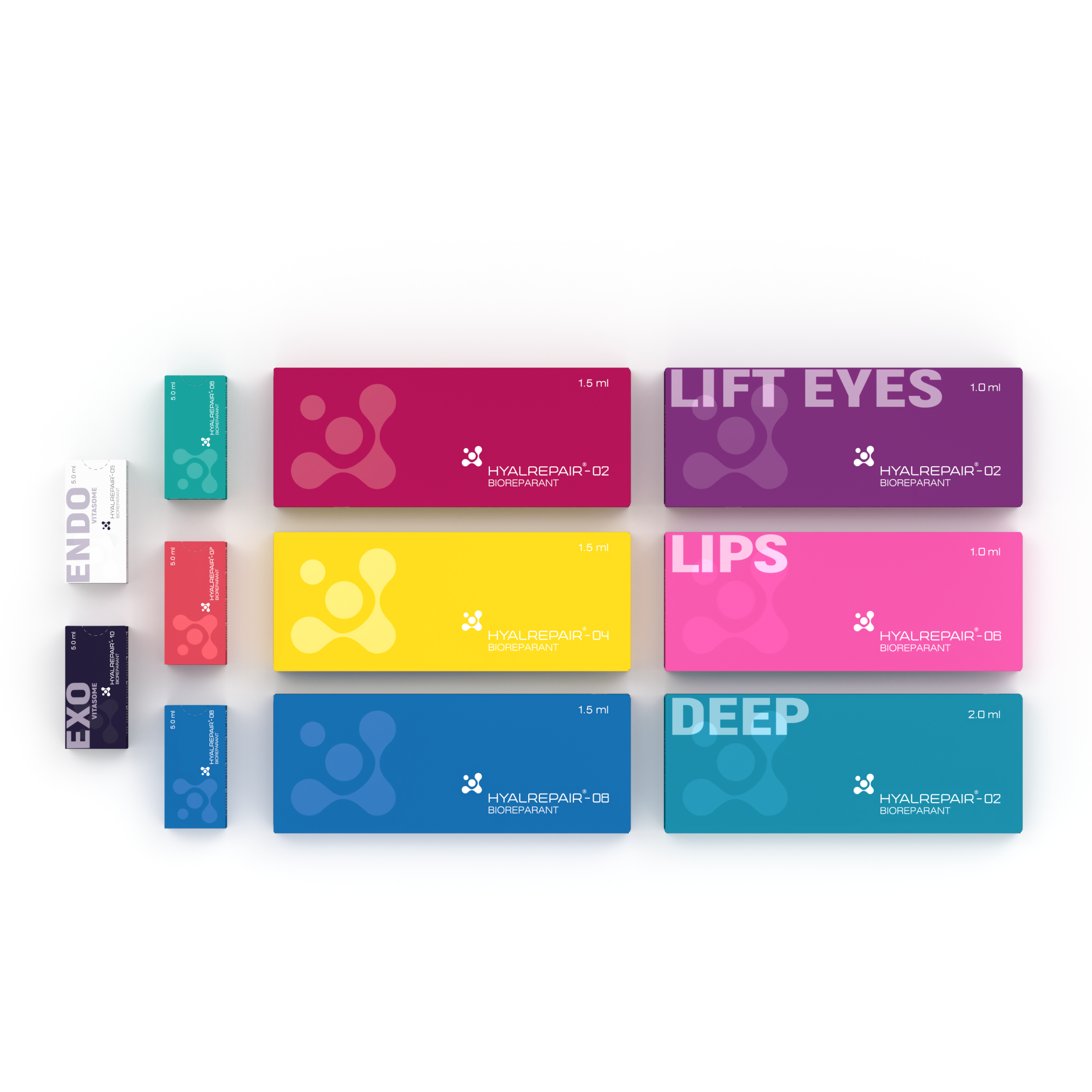 Инновационные препараты для биорепарации основаны на уникальной технологии HYALREPAIR® technology. Биорепаранты — первый класс препаратов, в которых к молекуле гиалуроновой кислоты присоединены биологически активные вещества путем твердофазной модификации, что обеспечивает их длительнее нахождение в коже (до 3 недель) и стимуляцию клеточной активности. HYALREPAIR® биорепаранты – это единственные биорепаранты пролонгированного омолаживающего действия, эффективность которых доказана гистологическими, морфологическими и клиническими исследованиями. Они способны корректировать самые сложные эстетические проблемы кожи, запуская собственные процессы омоложения и восстановления кожи на клеточном уровне. Созданы на основе запатентованной технологии HYALREPAIR® technology. Патент № 2382050.