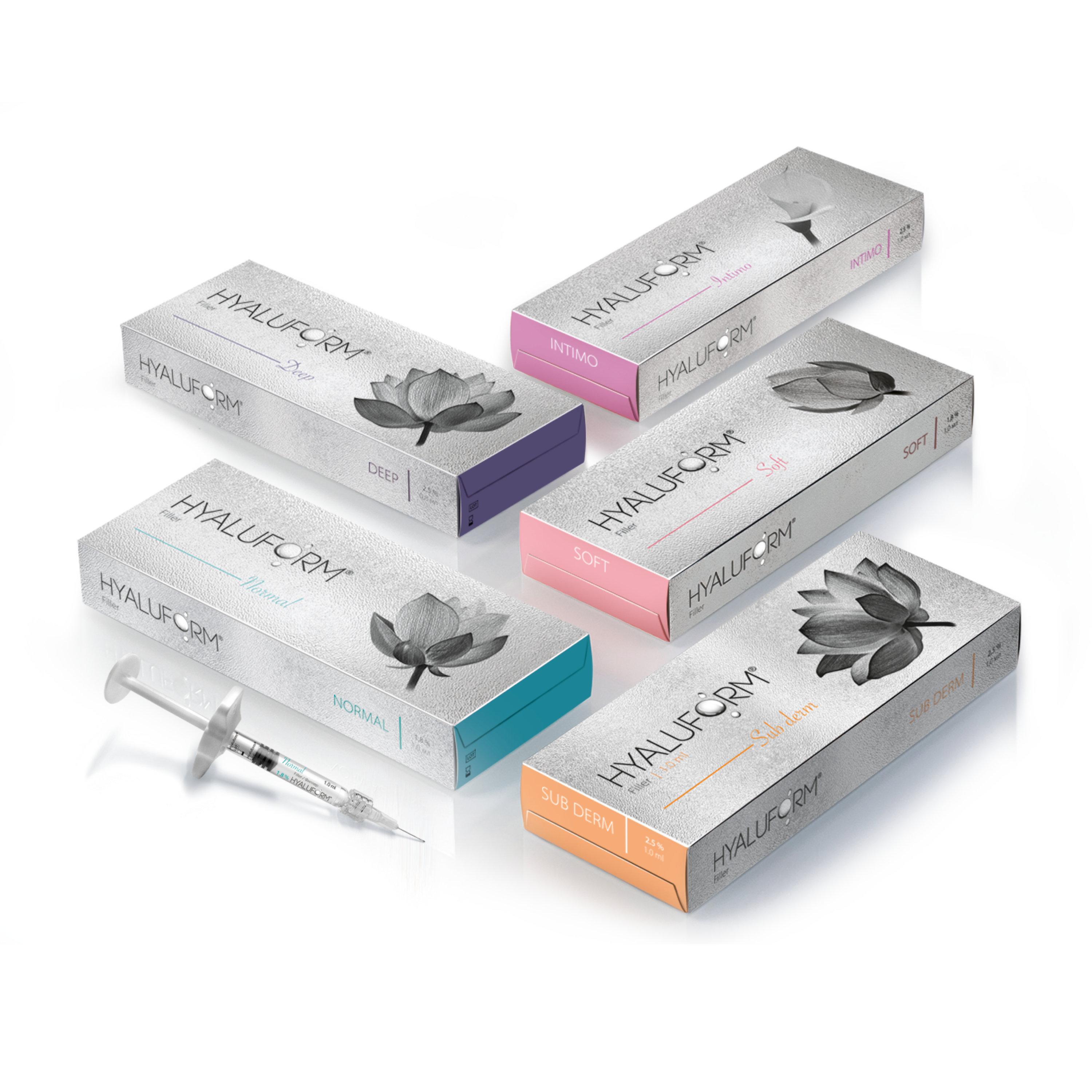 Линия HYALUFORM® filler представляет новое поколение биологически совместимых, высокопластичных, биодеградирумемых препаратов для контурной пластики. В основе производства филлеров HYALUFORM® лежит принципиально новая технология многоэтапной стабилизации гиалуроновой кислоты с получением гомогенного соединения частиц высокостабилизированной гиалуроновой кислоты с менее стабилизированной гиалуроновой кислотой с образованием устойчивых пространственно-структурных связей по принципу «cross-modul®». Филлеры HYALUFORM® обладают эффектами бифазных филлеров, и при этом равномерно интегрируется в тканях как монофазный гель. Неоспоримым преимуществом препарата является его пластичность, идеальная интеграция в тканях, хорошее удержание объема и комфортность при введении для пациента даже без использования анестезии. Инновационная формула имплантатов HYALUFORM® filler разработана учеными Международного научно-исследовательского центра МНИИЦИТ МАРТИНЕКС с учетом самых строгих требований, предъявляемые к свойствам, качеству, эффективности и безопасности современных препаратов. ISO 13485. Формула защищена международным патентом. Особенности и преимущества: